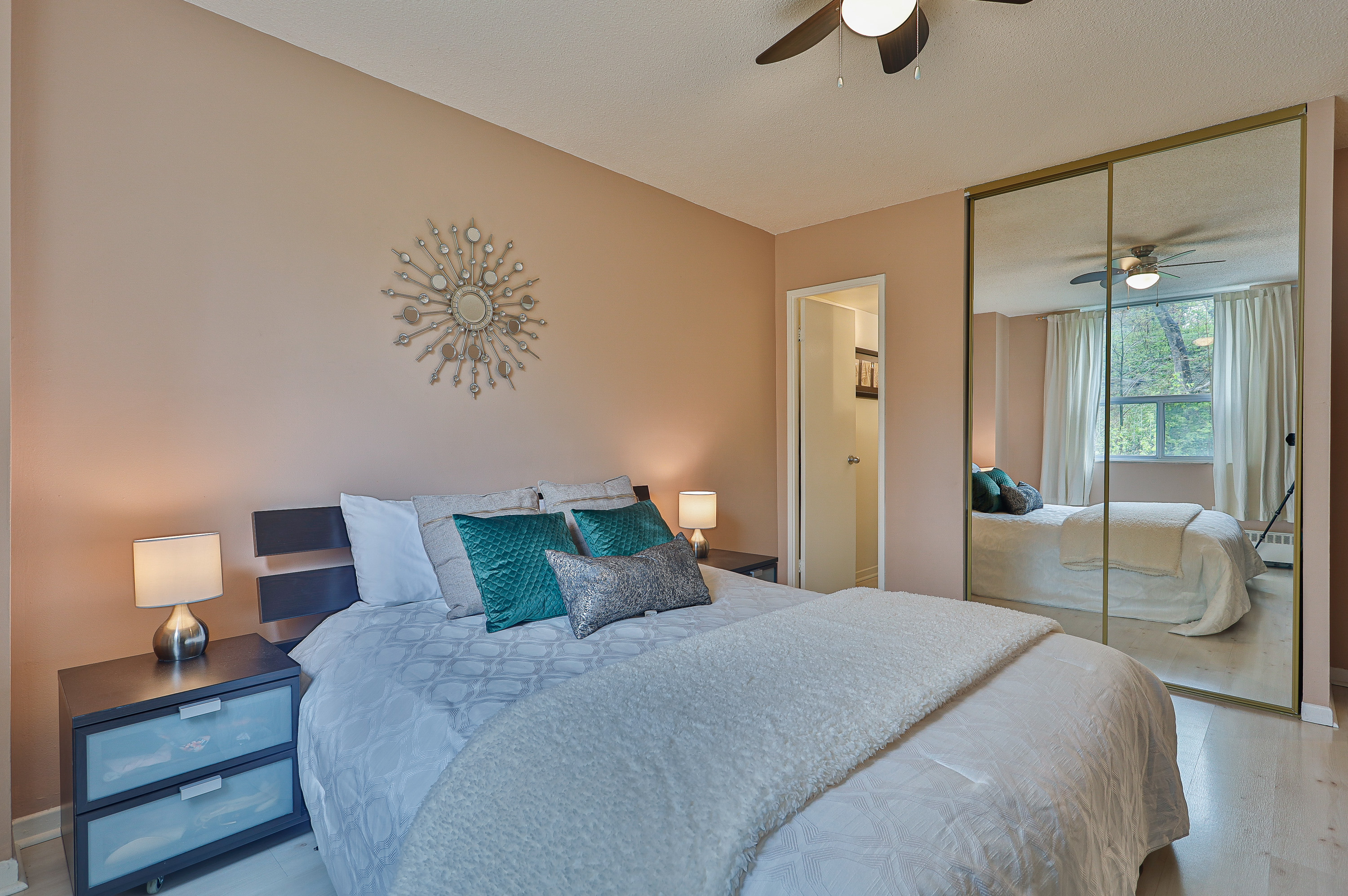 This 997 Sq. Ft Condo Features A Large Master Br With 2 Pc Ensuite, Bright 2nd Br With W/I Closet, Combined Living And Dinning Room With Walk Out To Private Balcony.